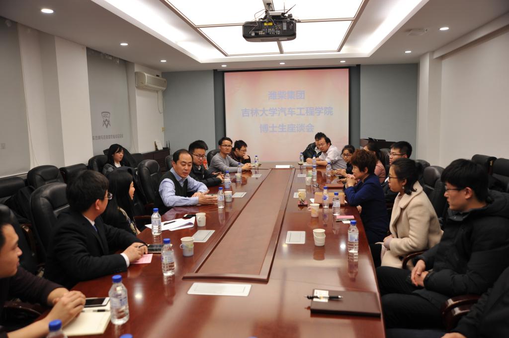 3月14日,潍柴集团党委副书记、潍柴动力股份有限公司党委书记王勇一行7人到av在线 ,就吉大-潍柴研究院筹建、博士生招聘等工作开展调研座谈,并出席“潍柴动力奖学金”颁奖仪式。校学生工作部副部长衣长涛、研究生工作部副部长刘雪峰、科技开发中心副主任卢广林等出席相关活动,学院党委书记李善兴以及相关班子成员陪同参加。