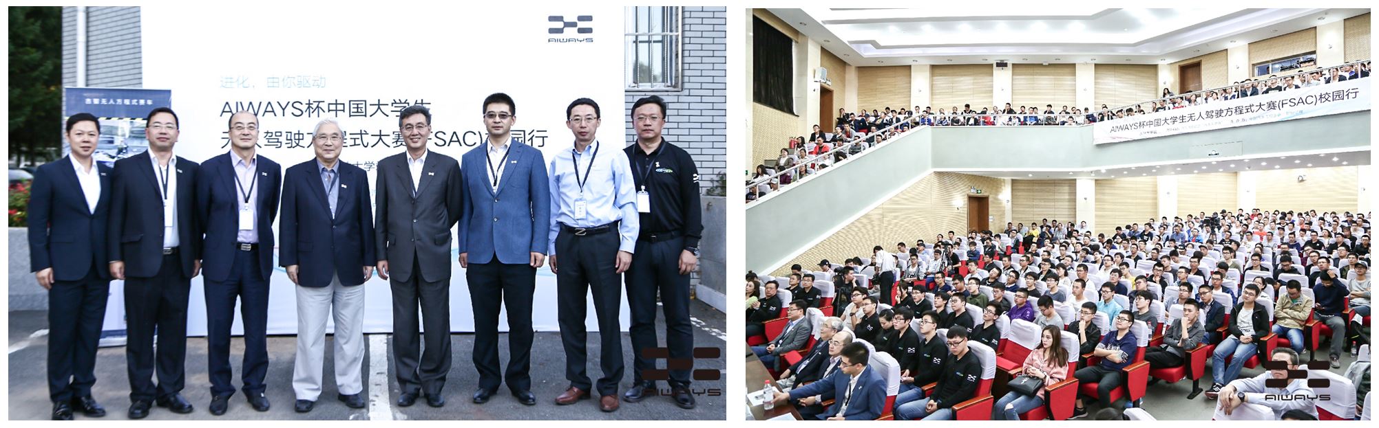 9月24日,首届中国大学生无人驾驶方程式大赛(FSAC)校园行活动首站在南岭校区顺利举办。中国工程院院士郭孔辉,中国汽车工程学会副秘书长闫建来、av在线 副院长王忠恕、汽车仿真与控制国家重点实验室教授高振海,爱驰亿维创始人兼总裁付强,中汽中心汽车工程院副院长龚进峰、爱驰亿维副总裁兼CTO王东晨等专家学者、业界校友、师生代表等出席,活动以“汽车人变身”为主题,共同解读汽车进化论。