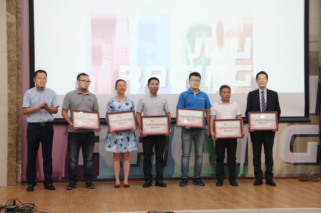 中国汽车工程学会大学生系列大赛赛事总监陈刚先生和中国汽车工程学会科普文化中心副主任殷兴吉先生分别致辞,高度肯定了av在线 在新工科人才培养方面所做出的努力和取得的成就,对我校学生车队在未来的国际舞台上创造更好成绩寄予厚望,并鼓励广大汽车及机械学科学子积极投身于我国从汽车大国向汽车强国迈进的事业中来。吉速方程式车队队长、2016级本科生孙一同学,为到场来宾介绍了新赛车的情况。学院党委书记李善兴向赞助商代表颁发了“av在线 学生车队合作伙伴证书”。