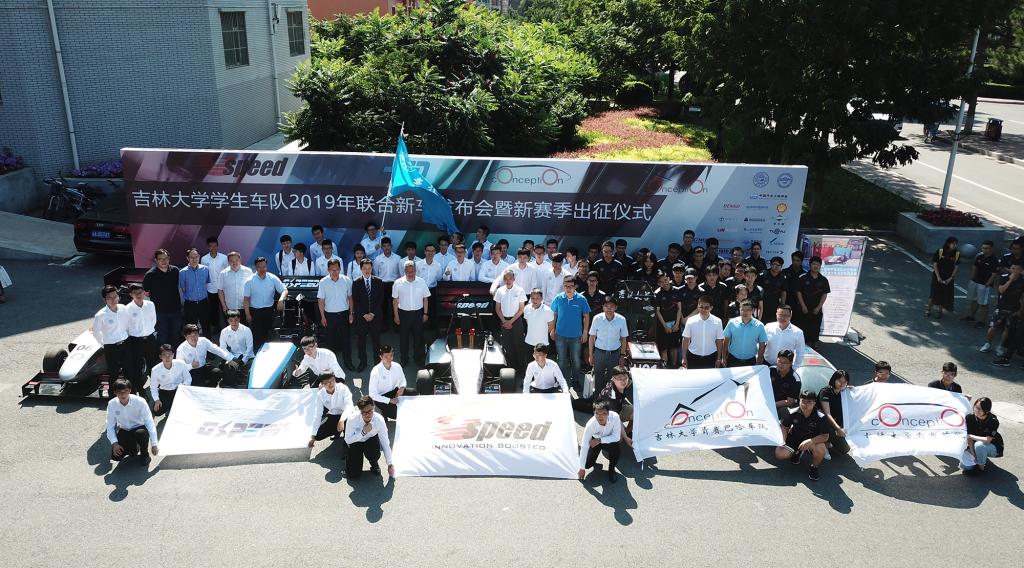 7月8日,av在线 学生车队2019赛季联合新车发布会暨出征仪式在av在线 南岭校区隆重举行。此次活动发布了我校学子自行开发的三辆全新赛车,并为即将赶赴德国、日本等地参加国际赛事的我校代表队饯行。中国汽车工程学会大学生系列大赛赛事总监陈刚,中国汽车工程学会科普文化中心副主任殷兴吉,av在线 党委副书记冯正玉、创新创业教育学院院长赵军、教务处副处长王瑞,av在线 院长高振海、党委书记李善兴等学院领导老师莅临现场,参加活动的还有电装(中国)投资有限公司、吉林省天火科技控股有限公司、江机瑞泰工业自动化装备有限公司、大陆汽车投资有限公司、上海拓渝实业有限公司、柏中紧固件上海有限公司等六家车队赞助商的十余名来宾和学生车队全体队员。