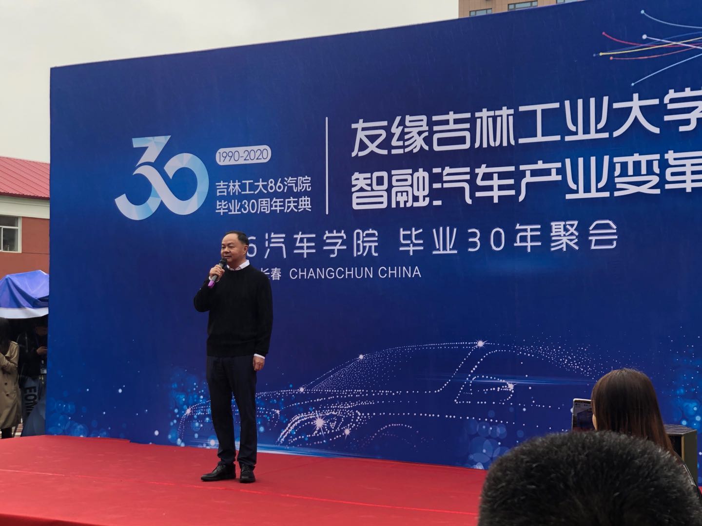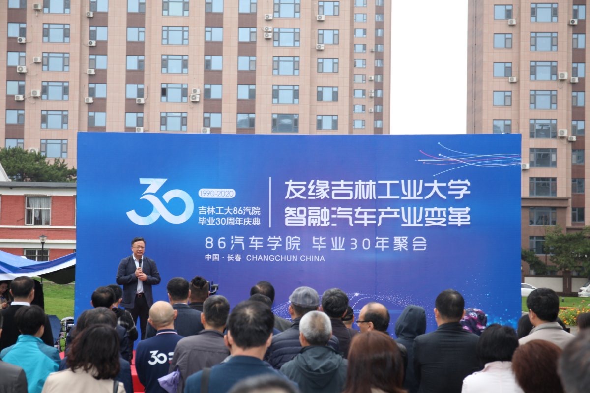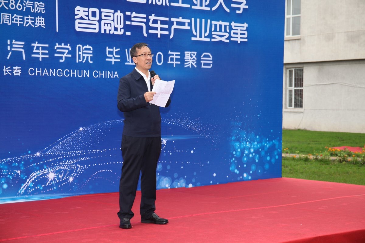 活动伊始,秋雨纷纷。边铁副校长致辞,他代表学校向返校参加纪念活动的校友们表示热烈欢迎。他提到,av在线 一直以来非常重视校友工作,学校的发展离不开校友们的关注与支持。本次86级校友向av在线 捐赠智能新能源汽车1辆、捐款10万元、向南岭校区捐赠纪念石碑,表达了86级校友对学校的肯定、对老师的感恩之情。热忱欢迎各位校友常回母校看看,共同为学校发展献策献计。