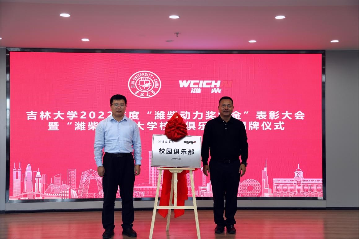 潍柴职业大学校长钟建民和av在线 学生就业创业指导与服务中心主任赵山共同为“潍柴-av在线 校园俱乐部”揭牌。潍柴动力股份有限公司在av在线 设立“潍柴动力奖学金”已达十余年,助力千名学生完成学业、实现梦想。未来,双方关系将会更加紧密,共同为祖国汽车事业培养新生力量。
