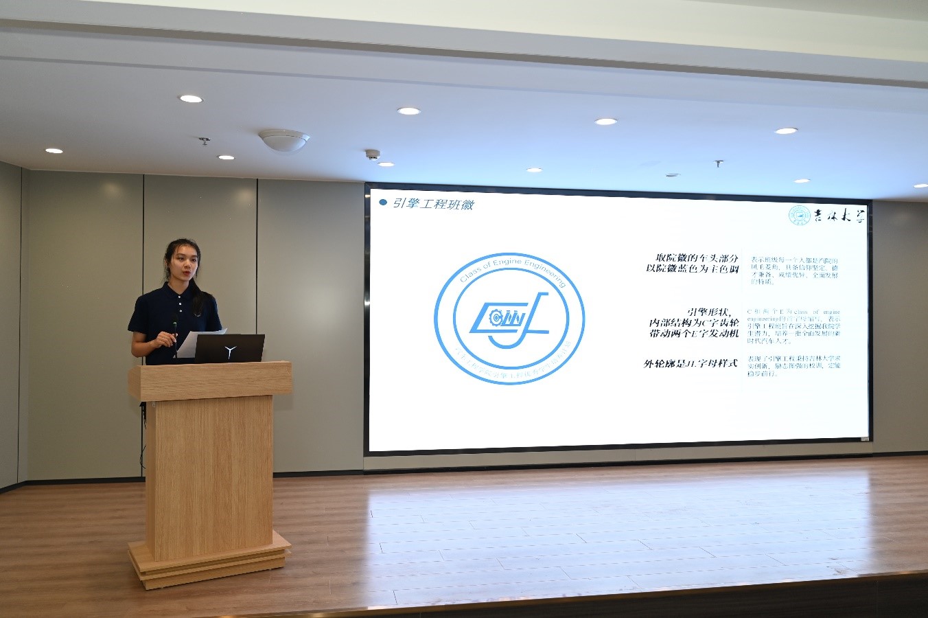 “引擎工程”优秀学生培养计划班徽、班旗发布仪式上,设计者王悦欢同学介绍设计理念,发展规划处处长黄河、团委书记马景惠为“引擎工程”优秀学生培养计划班徽揭幕,党委学生工作部部长代磊为“引擎工程”优秀学生培养计划班级授旗