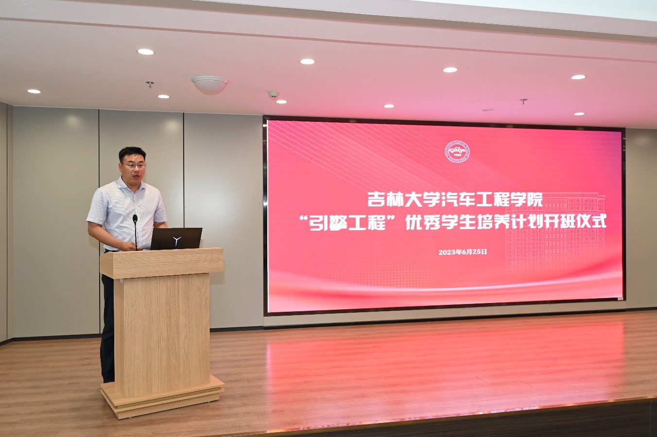 2023年6月25日下午,av在线 2023年“引擎工程”优秀学生培养计划(第一期)开班仪式在汽车工程大楼214会议室隆重举行。av在线 党委常委、副校长张国兴,一汽-大众汽车有限公司人力资源总监李松梅参加仪式,仪式由av在线 党委副书记兼副院长聂逯松主持。