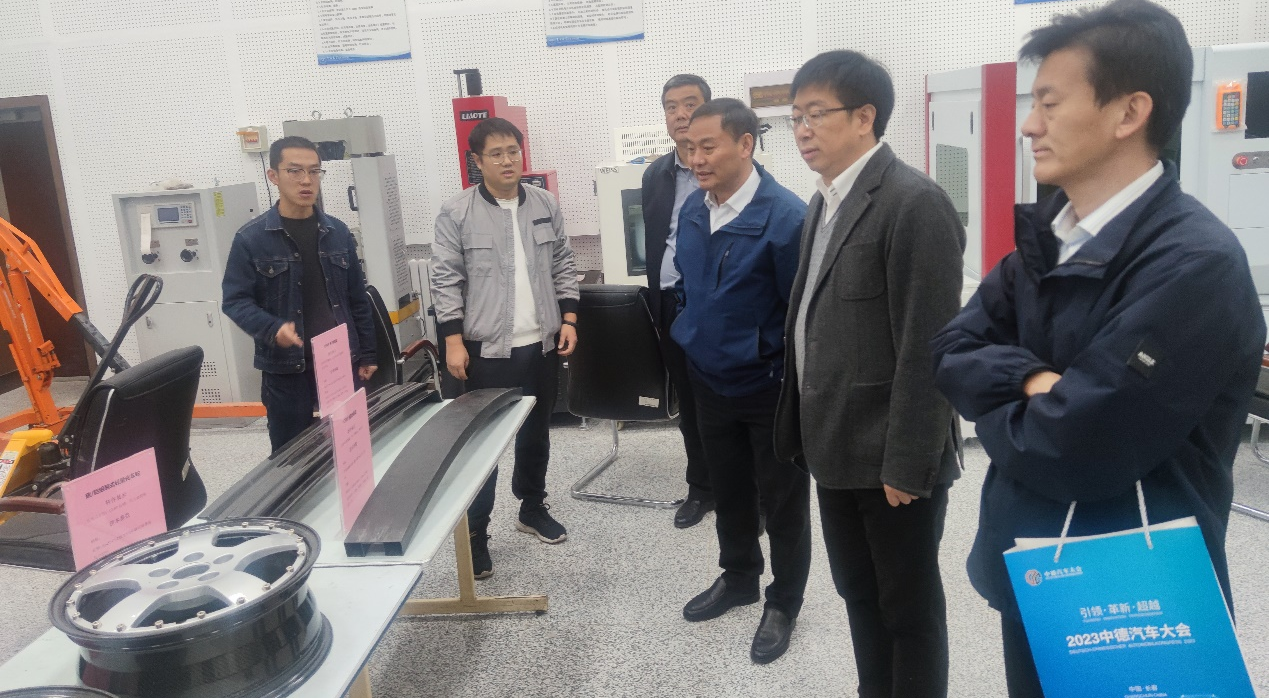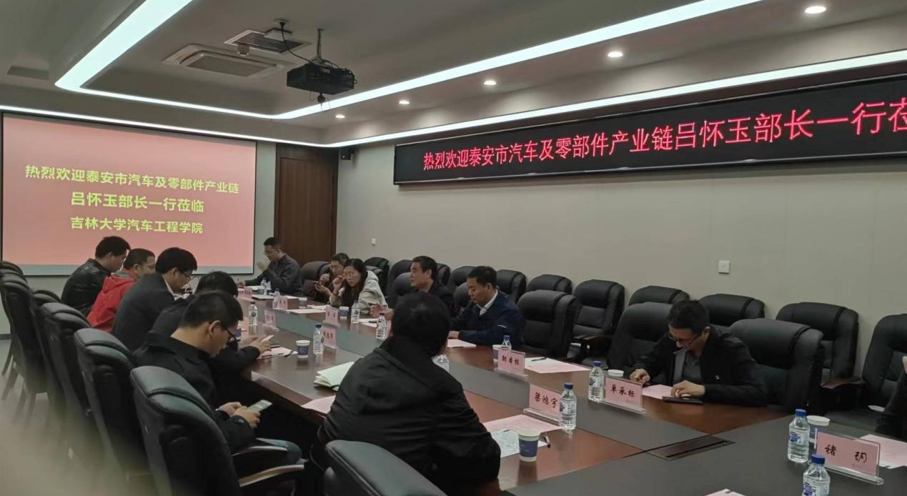 2023年10月18日,泰安市二级巡视员吕怀玉、泰安市商务发展服务中心主任张革、泰安市汽车及零部件产业链专班项目组组长安静、泰安市宁阳县高新区科技创新部部长邹本栋、av在线 青岛汽车研究院副院长单承标、av在线 青岛汽车研究院副院长赵玉强、青岛吉青工业设计有限公司总经理褚玥一行到我校av在线 就科研合作进行交流。av在线 党委书记黄忠华、av在线 副院长胡兴军、以及av在线 相关教师参加了交流会。