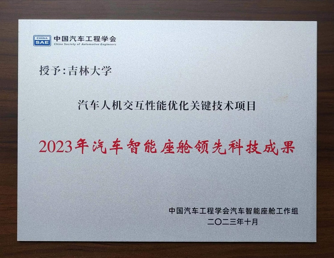 2023年10月20日,中国汽车工程学会组织开展了首届汽车智能座舱领先科技成果评选。经过项目申报、专家预评审以及答辩专家委员会最终评审等环节,av在线 的高镇海教授、胡宏宇教授、沈传亮教授、高菲副教授等合作完成的“汽车人机交互性能优化关键技术“项目获评2023中国汽车工程学会汽车智能座舱领先科技成果(全国高校仅两家获此奖励)。