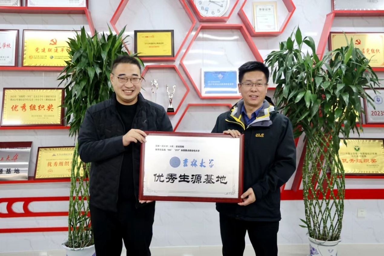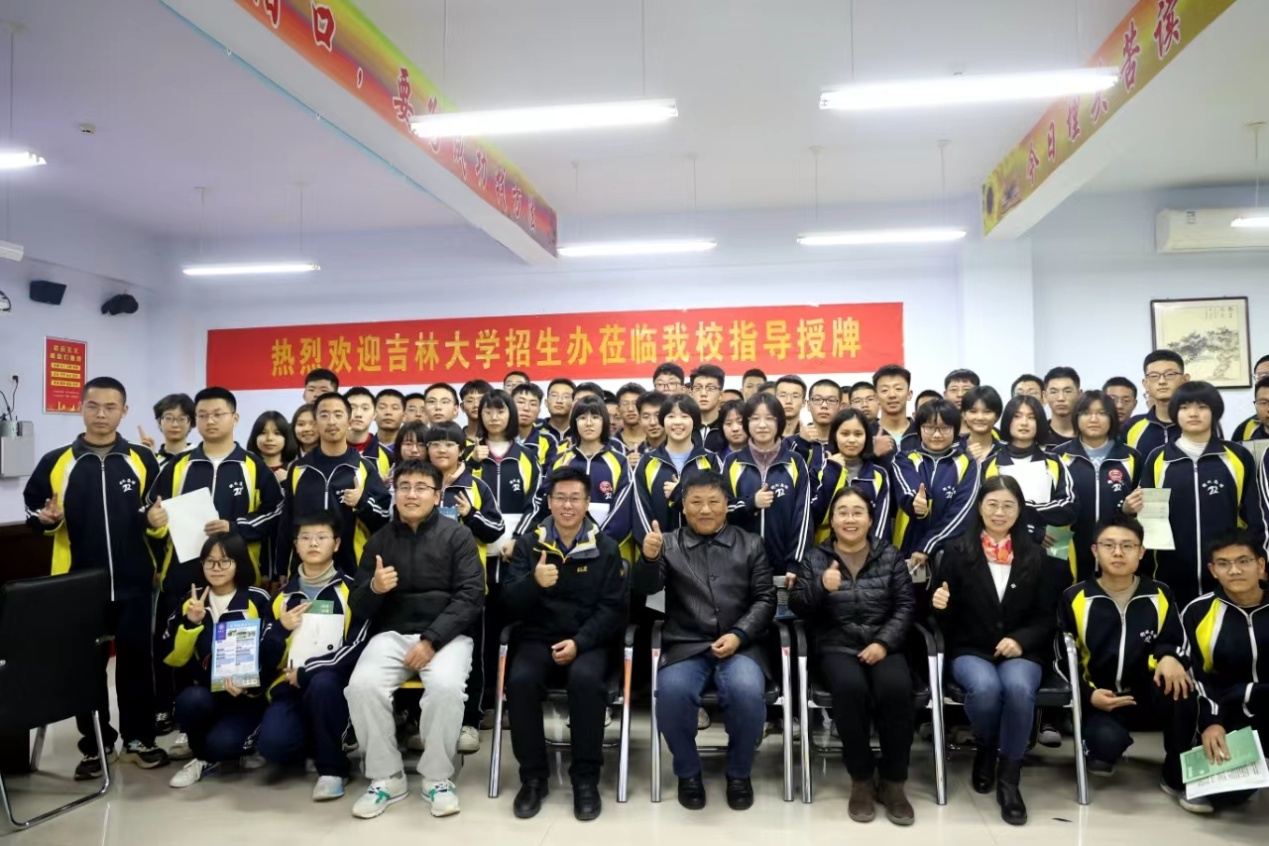 杨昌海老师代表av在线 向两所高中授予了优秀生源基地牌匾。双方就进一步加强合作进行了深入探讨并达成了共识。宣讲中我们注重融入当地文化因素,用孩子们喜闻乐见的语言和事例,图文并茂、生动活泼的讲述吉大故事。特别是在清河志臻中学,我们邀请了中国农大负责河北招生的两位校友—李老师和迟老师一同前往。同室依次演讲,共同答疑解惑。在志臻中学搞了个吉大校友会。充分展现了吉大的办学实力,破除了河北考生和家长在东北上学就得在东北就业的误解和困惑。