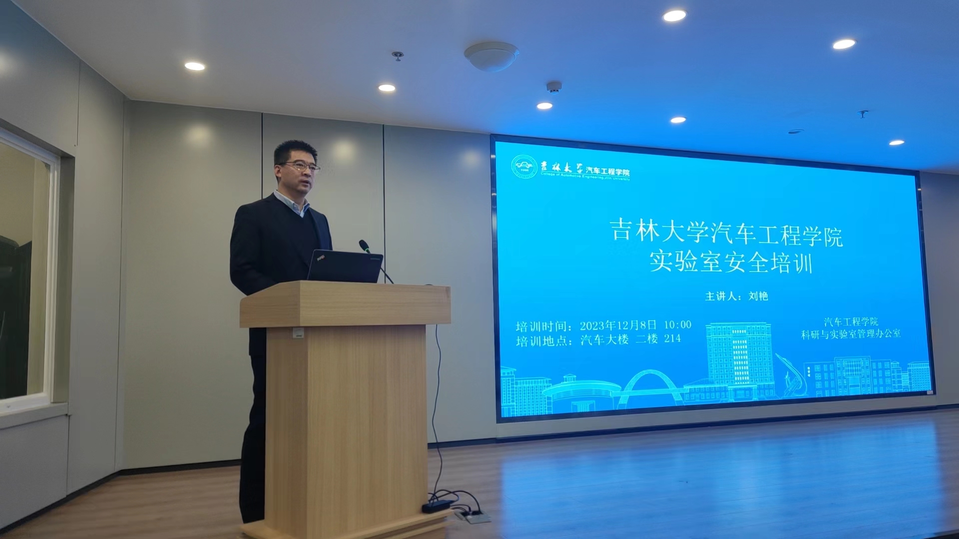 为扎实做好我院实验室安全工作,加强学院实验室安全队伍建设,提升实验室安全意识,2023年12月8日,av在线 于汽车大楼214室开展实验室安全培训大会。学院全体实验技术人员、科研团队实验室安全负责老师、研究生代表、本科大创车队负责老师以及车队负责学生参加了培训大会。会议由学院副院长王忠恕教授主持,邀请av在线 实验室管理处刘艳研究员做题为《高校实验室安全管理制度》的报告。