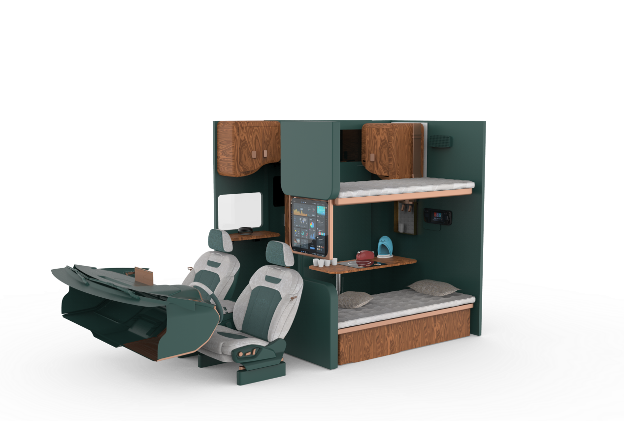 经过初赛和省赛的层层选拔,在指导老师和学生们的共同努力下,参赛队伍“海风缀繁华”的《驭享新境——基于胶囊公寓理念的智能商用车生活舱创新设计》作品荣获省级特等奖,顺利进入国赛,并在全国总决赛中荣获国家级二等奖。
