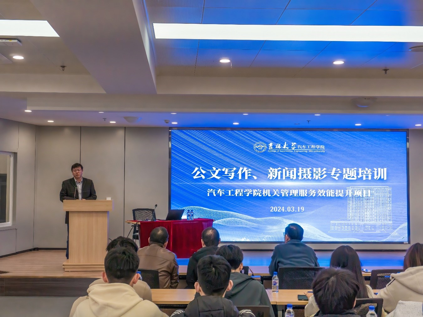 为改进学院机关工作作风,强化机关管理运行效率和服务水平,做好对内对外的新闻宣传和新闻内容的建设与管理,提高师生们的公文写作水平和新闻摄影技巧,av在线 于3月19日,面向全院师生开展了机关管理服务效能提升项目—公文写作、新闻摄影专题培训(第二场)。活动邀请到av在线 党委组织部副部长徐仁元老师担任主讲嘉宾,学院党委书记黄忠华、教工党支部书记、机关职能部门代表等出席本次培训。