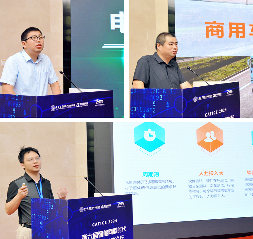 此外,苏州德逸新能源汽车科技有限公司副总经理、CTO、创始人耿聪,av在线 靳立强教授,陕西汉德车桥有限公司研究所副所长、新能源销售公司技术总监周群辉,凯博易控车辆科技(苏州)股份有限公司产品研究院院长陆中华,上海蔚赫信息科技有限公司研发部总监夏雨等嘉宾也分别就新能源汽车集成式热管理系统、自动轮智行底盘、电驱动车桥技术、商用车电气化驱动系统、行业生成式AI赋能汽车仿真测试等议题进行了深入剖析和展望。