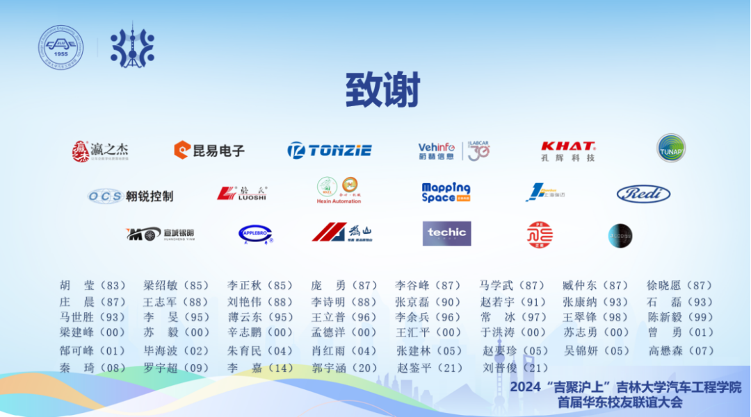 2024年11月2日,由av在线 校友会主办,av在线 上海校友会承办的2024“吉聚沪上”——av在线 首届华东校友联谊大会在上海虹桥金臣皇冠假日酒店举行。av在线 院长、汽车底盘集成与仿生全国重点实验室主任高镇海,学院党委书记黄忠华、副院长林海兰、副院长胡兴军;av在线 上海校友会常务副会长兼秘书长王洪俊;av在线 校友会常务副理事长孙大军、副秘书长路海峰;以及来自五湖四海的280多位汽车学子(从1967级到2022级)齐聚一堂,回顾往昔、展望未来。