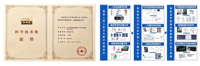 “汽车驾乘体验感数字化开发关键技术及产业化”项目由av在线 牵头,联合一汽解放汽车有限公司、重庆长安汽车股份有限公司、中汽信息科技(天津)有限公司、赢富仪器科技(上海)有限公司等单位共同完成。项目团队自2009年起,在国家重点研发计划、国家自然科学基金、省部级科技项目及行业重大工程任务等一批项目支持下,创新性建立了汽车驾乘体验感数字化设计开发理论方法新体系,发明了汽车高宜人性人机交互数字仿真优化技术,提出了人机耦合设计的高接受性汽车运动控制性能优化方法,构建了基于数字骨肌生理学模型的汽车行驶体验感测试方法及系统。通过项目研究,突破了高仿生逼真度、高主客观一致性的驾乘体验数字化设计开发的国际难题。项目所形成的多项关键技术指标达到国际先进水平。相关成果在一汽、长安等国内车企产品开发中得到应用,匹配解放J7、长安UNI-V等自主品牌车型50余款。显著改善了产品驾乘体验水平,相关技术的应用大大缩短产品研发周期。部分技术推广应用于海外北美福特、日本鸟取,取得了显著的社会经济效益与国际声誉。