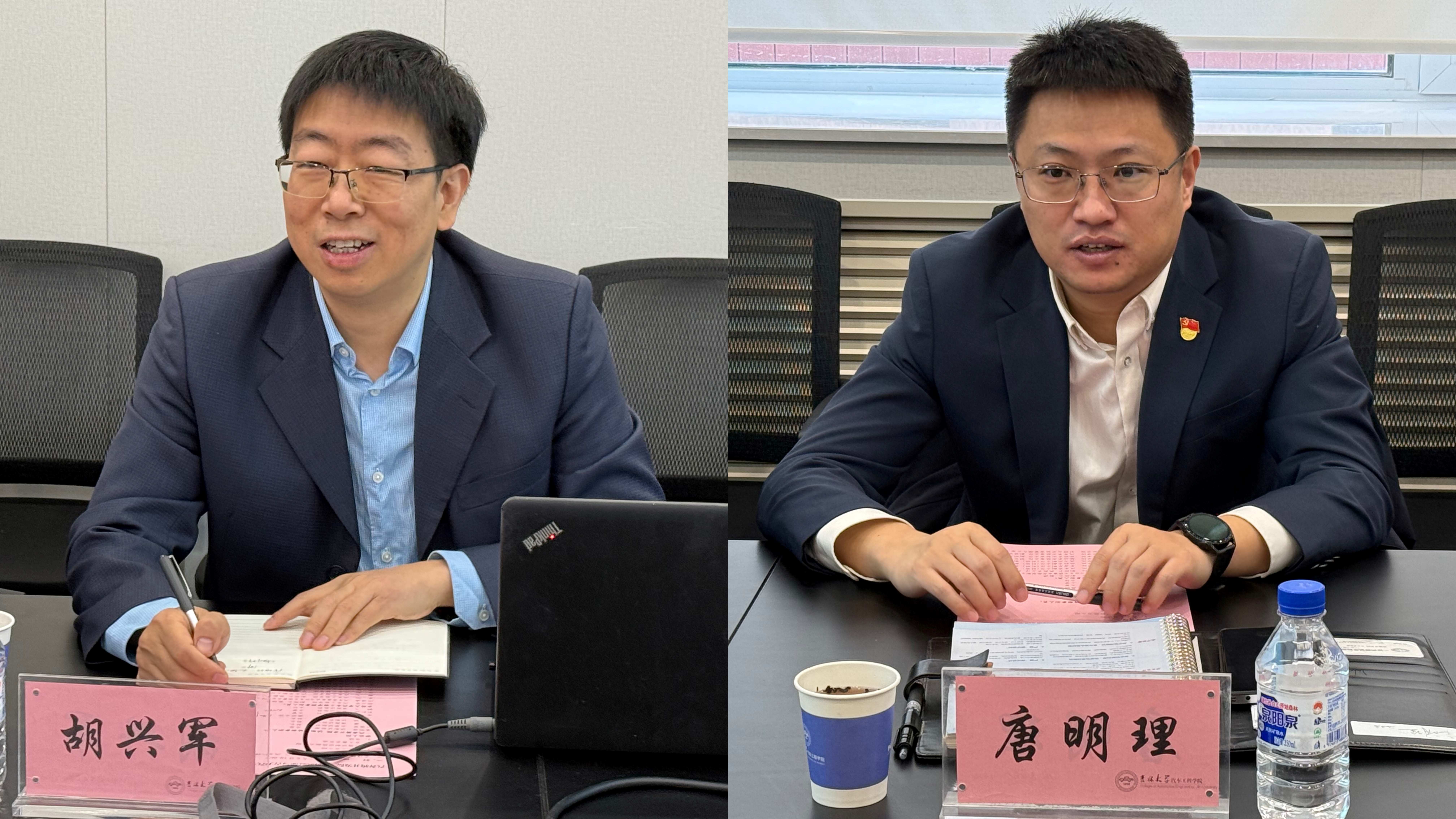 av在线 副院长胡兴军教授对唐明理一行的到来表示热烈欢迎,并详细介绍了学院的发展历程及科研概况。唐明理总监简要介绍了一汽奔腾的基本情况、产品布局及市场优势,并对av在线 的科研与教学能力表示高度认可。他建议引进优秀学生到部门实验室进行实践,并希望未来能与学院展开更紧密的科研合作。