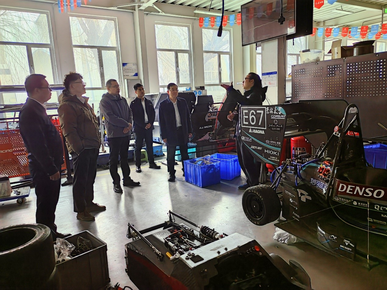 交流会后,朱冰院长陪同曲董事长一行参观了av在线 大学生车队。