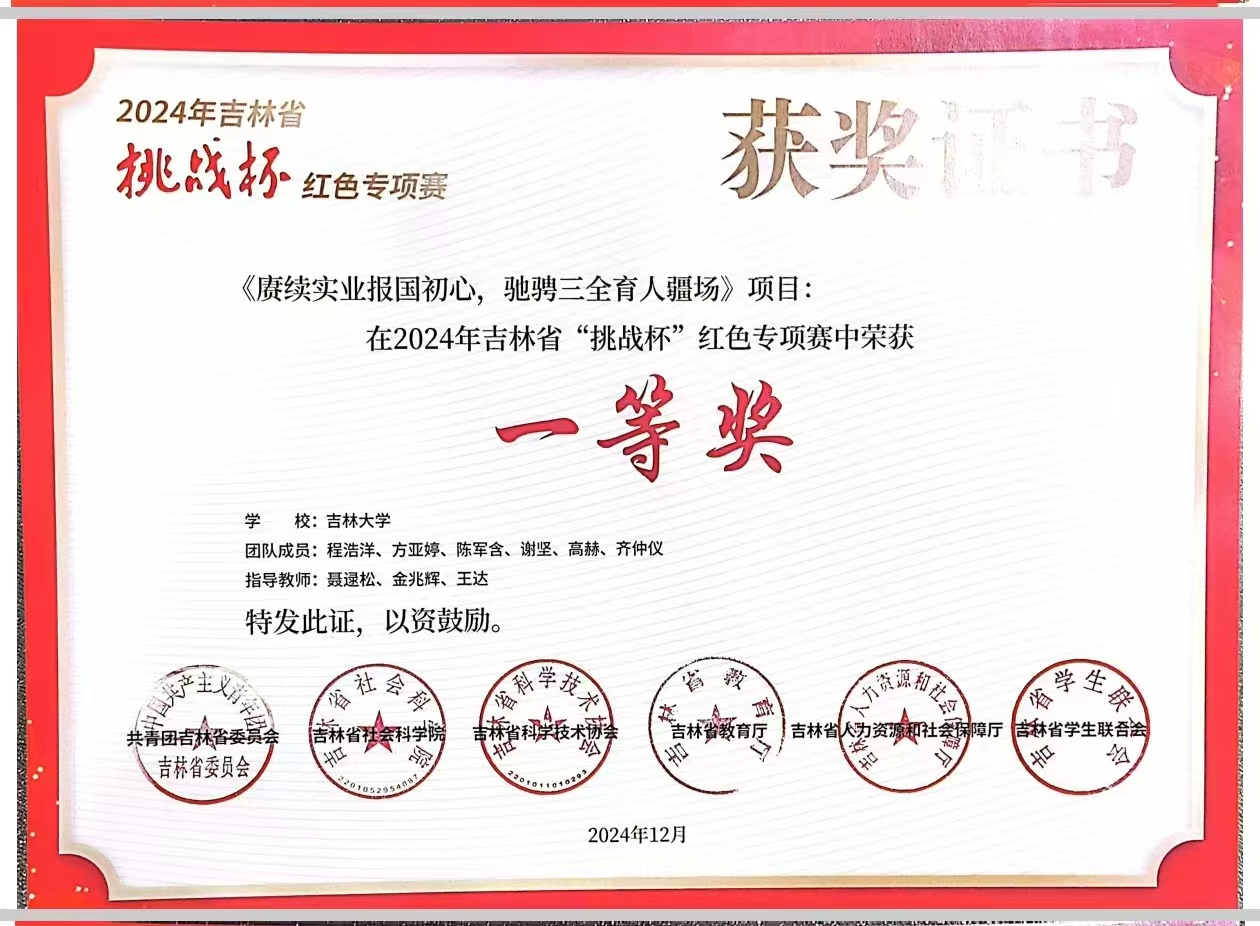 近日,在共青团吉林省委员会、吉林省社会科学院、吉林省科学技术协会、吉林省教育厅、吉林省人力资源和社会保障厅、吉林省学生联合会共同主办的2024年吉林省“挑战杯”红色专项赛中,av在线 学生工作办公室和学生车队党支部指导学生参赛并取得优异成绩。其中,参赛项目《赓续实业报国初心,驰骋三全育人疆场 ————以av在线 学生车队为例探究红色精神对双创实践平台的促进作用》荣获该专项赛一等奖。
