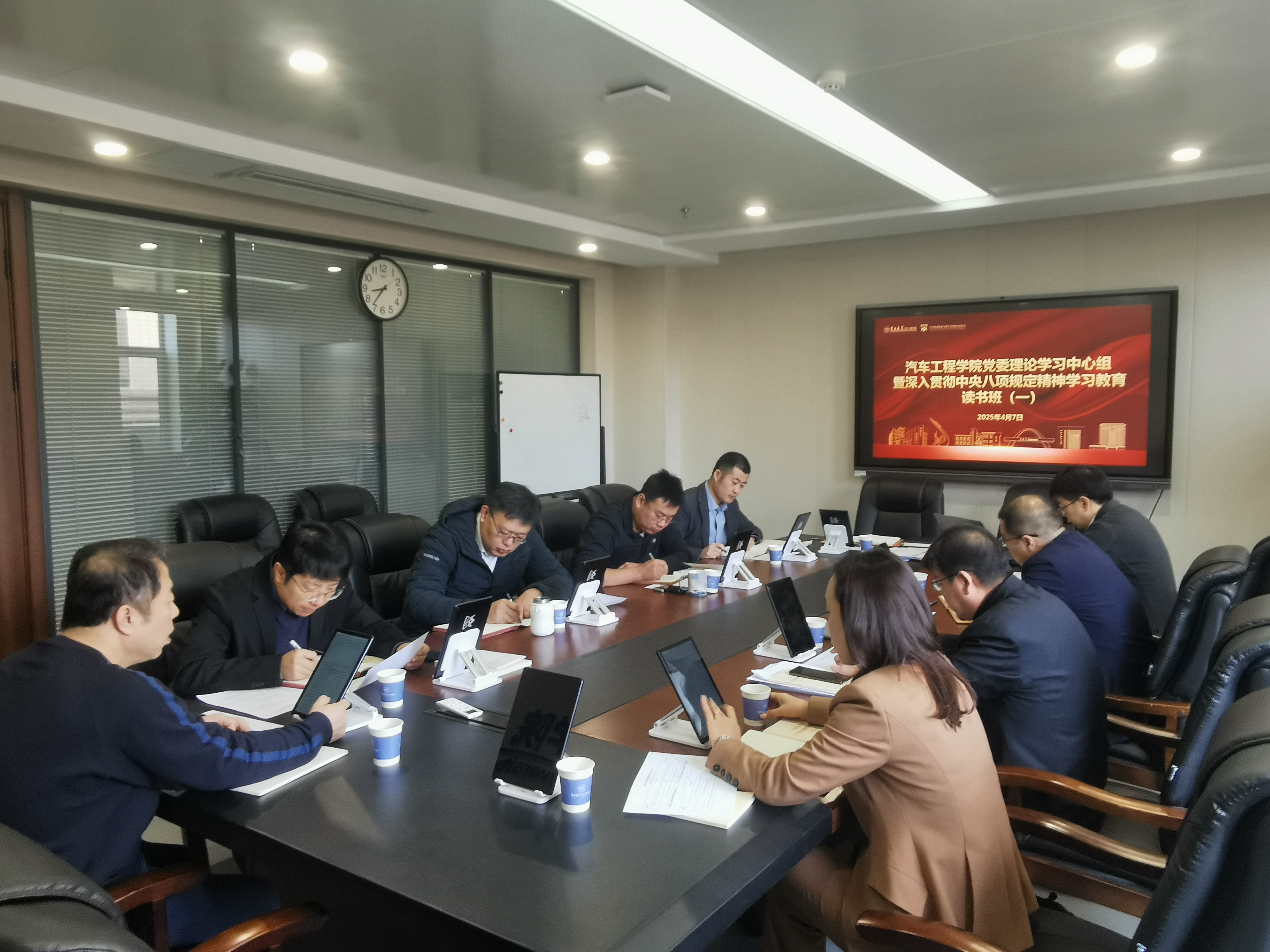 按照学校党委要求,根据学院工作安排,av在线 党委于4月7日上午在汽车工程大楼302会议室召开党委理论学习中心组集体学习会议暨深入贯彻中央八项规定精神学习教育读书班(第一期),会议由党委书记黄忠华主持。