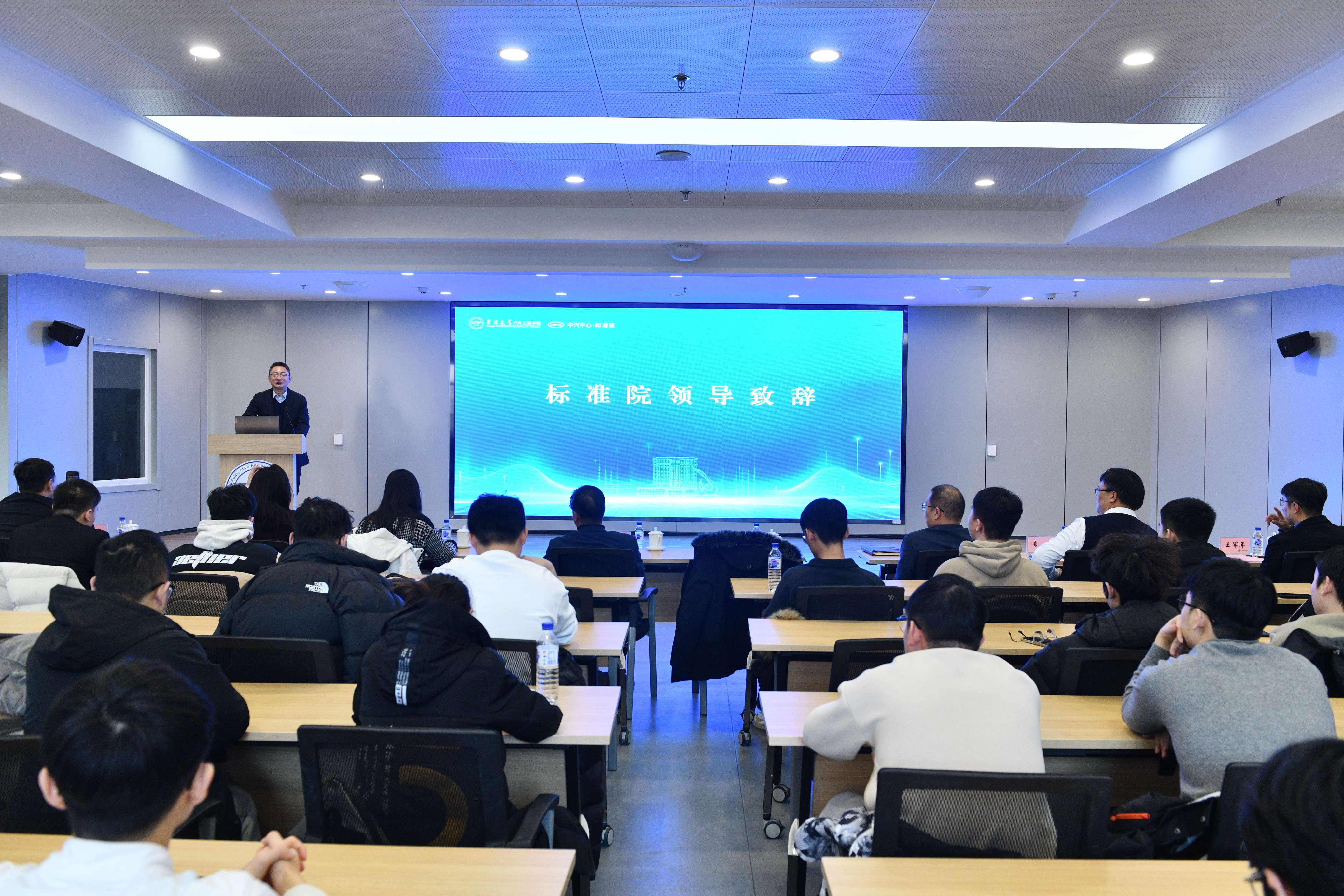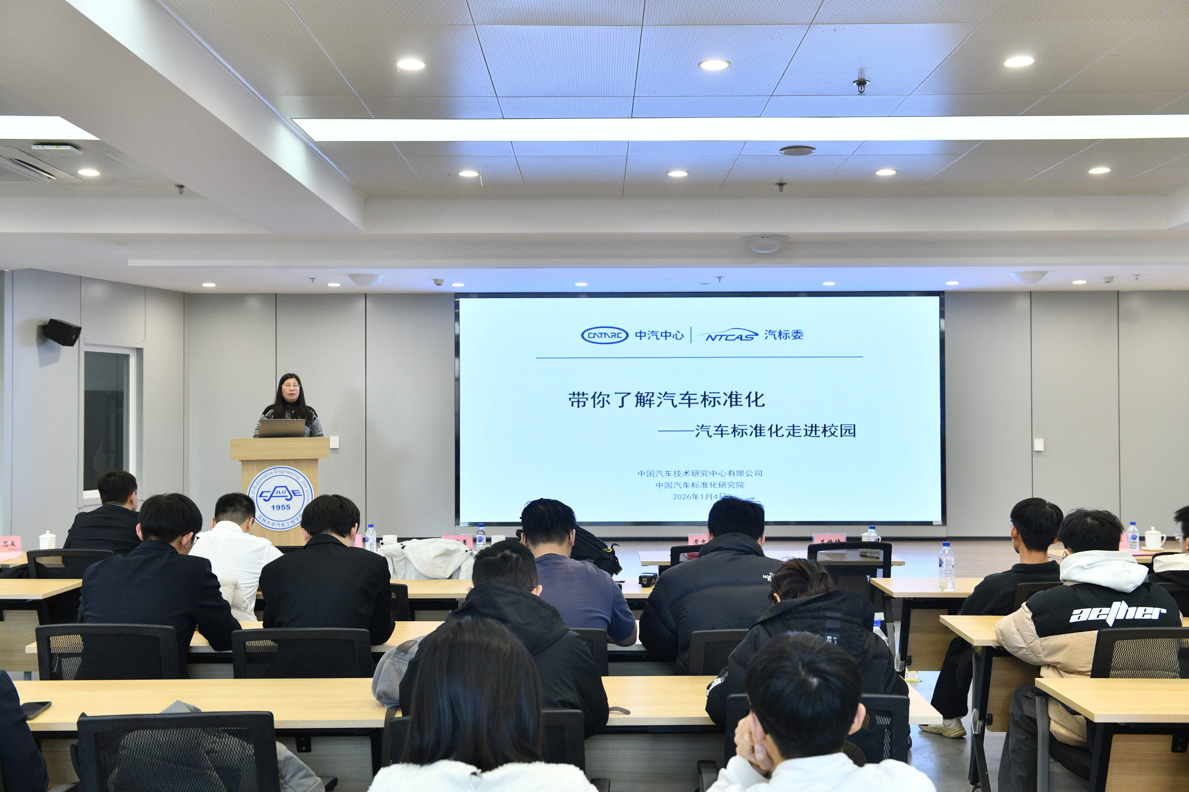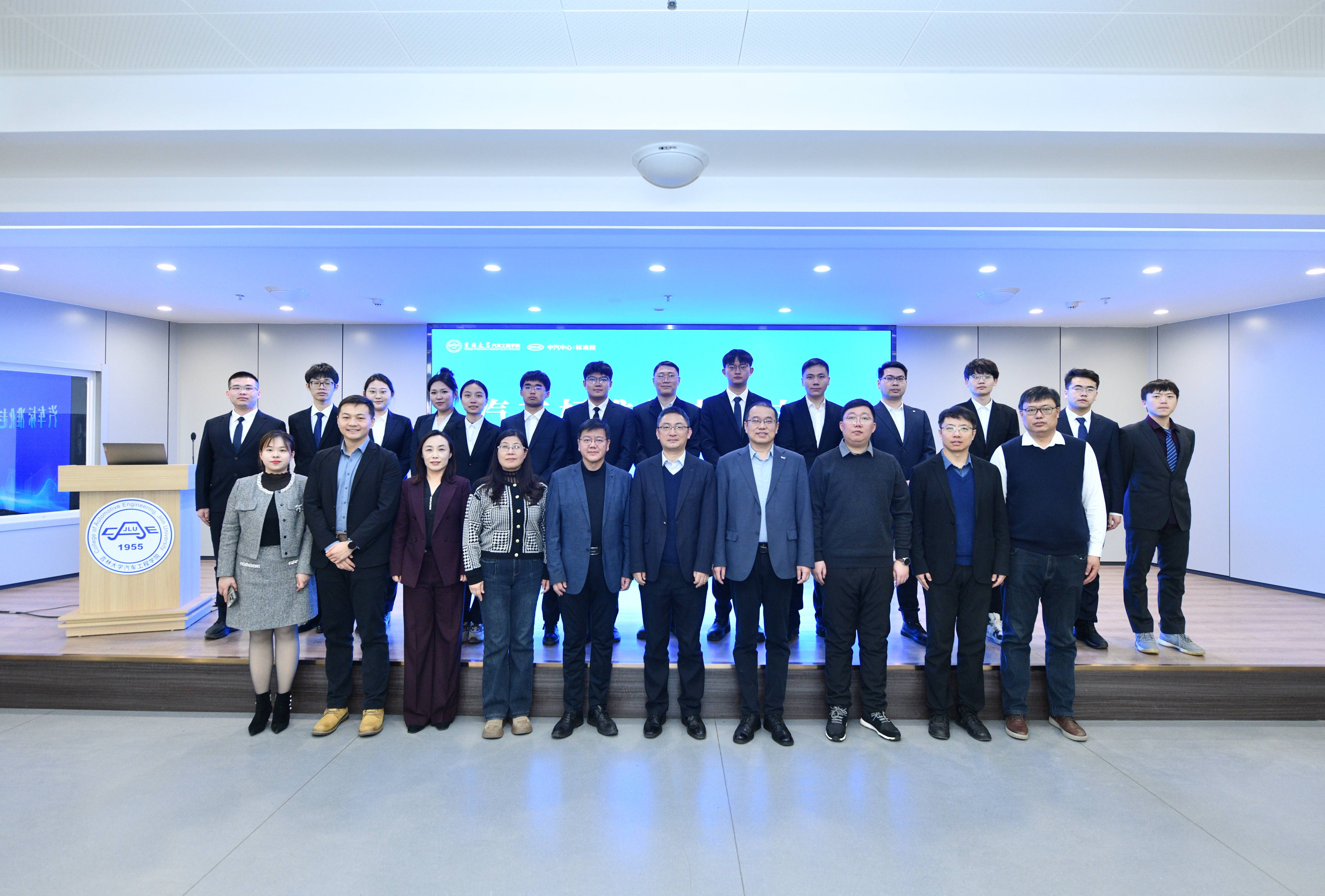 2026年1月4日,“汽车标准化走进吉大”主题活动在南岭校区汽车大楼214会议室举行。本次活动由av在线 与中国汽车技术研究中心有限公司汽车标准化研究院(以下简称 “标准院”)联合主办,av在线 党委书记黄忠华、院长朱冰,标准院副院长吕恒绪、技术总监李维菁,校企双方领导、师生代表共同参与,学院党委副书记林海兰主持会议。