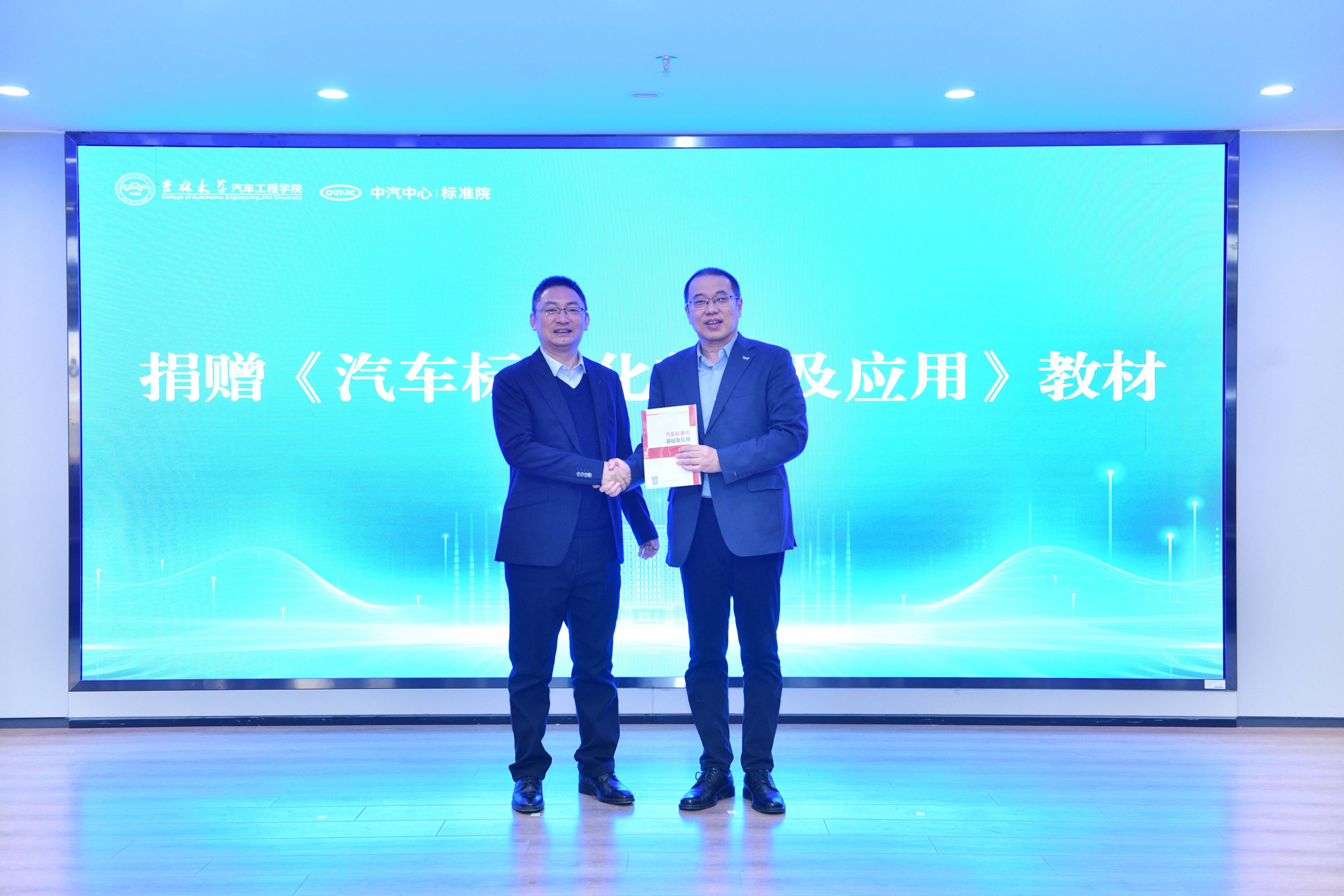 会后,来自标准院的专家聚焦汽车标准化发展以及汽车标准国际化展望开展标准化知识专题讲座,中汽中心标准化研究院向av在线 捐赠《汽车标准化基础及应用》教材。