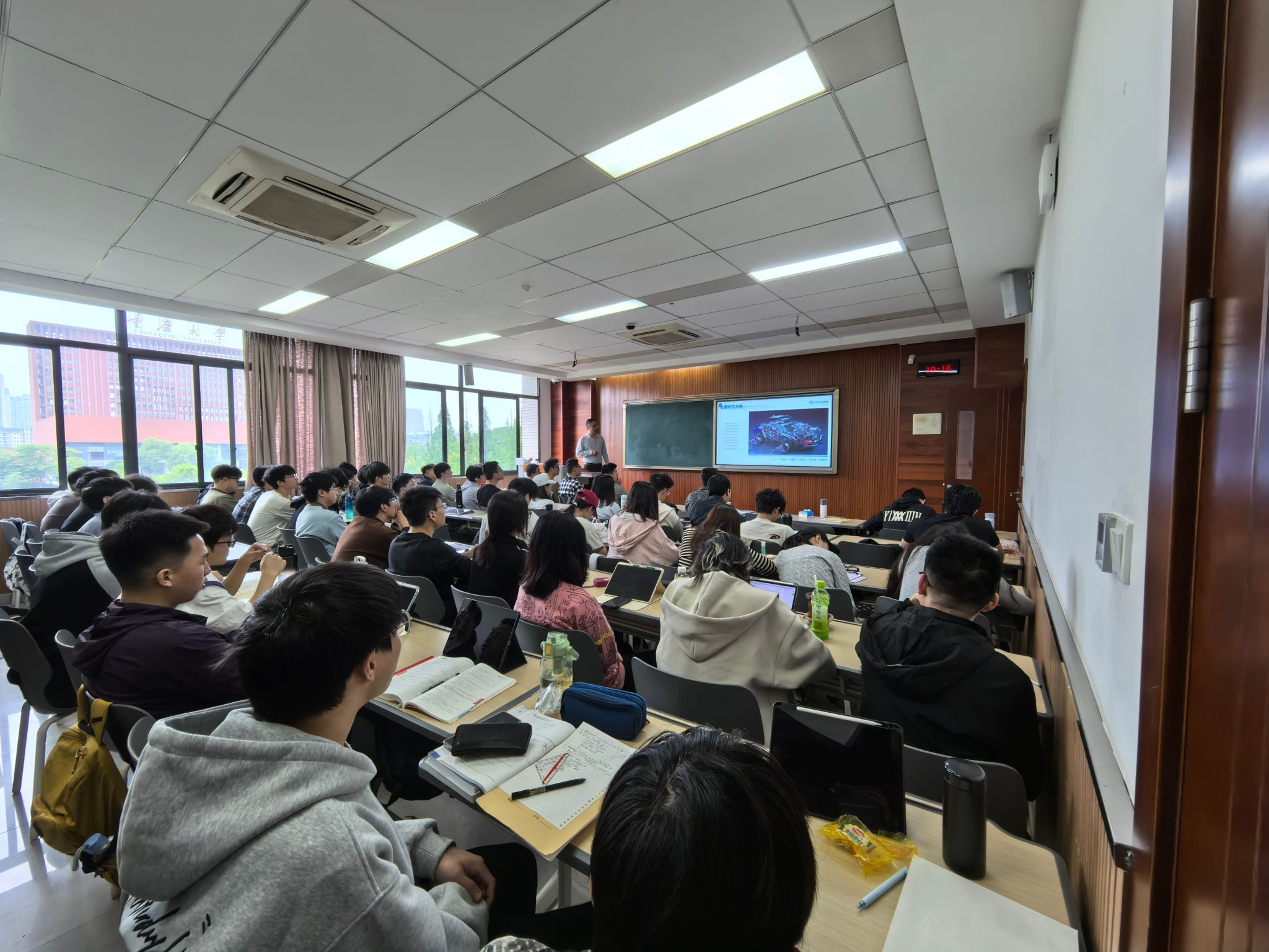 2026年4月15日,av在线 汽车系陈志勇教授赴重庆大学开展招生宣传,宣讲会上向重庆大学学子详细介绍了av在线 的发展历程、学科优势及人才培养体系。陈志勇教授介绍,av在线 拥有从学士到博士后的完整人才培养体系,是中国汽车工业人才培养的重要基地。他重点解读了学院2026年研究生招生政策,包括车辆工程、动力工程及工程热物理等特色学科的招生计划、导师团队及科研方向,并介绍了学院在智能网联汽车、新能源汽车等前沿领域的科研平台与成果。