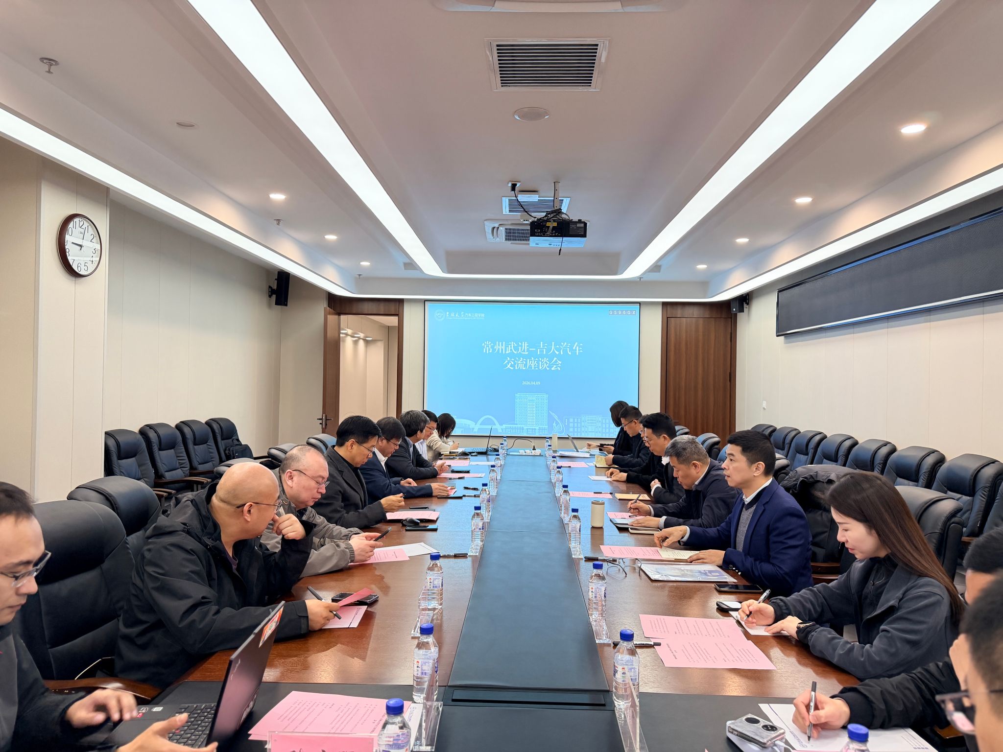 2026年4月9日,常州武进区科技镇长团一行8人来访av在线 ,围绕智电汽车、高端装备、新型储能、关键核心技术攻关等领域开展产学研合作专题洽谈。学院党委书记黄忠华、副院长胡兴军,汽车底盘集成与仿生全国重点实验室副主任闵海涛、章新杰以及教师代表出席了会议。