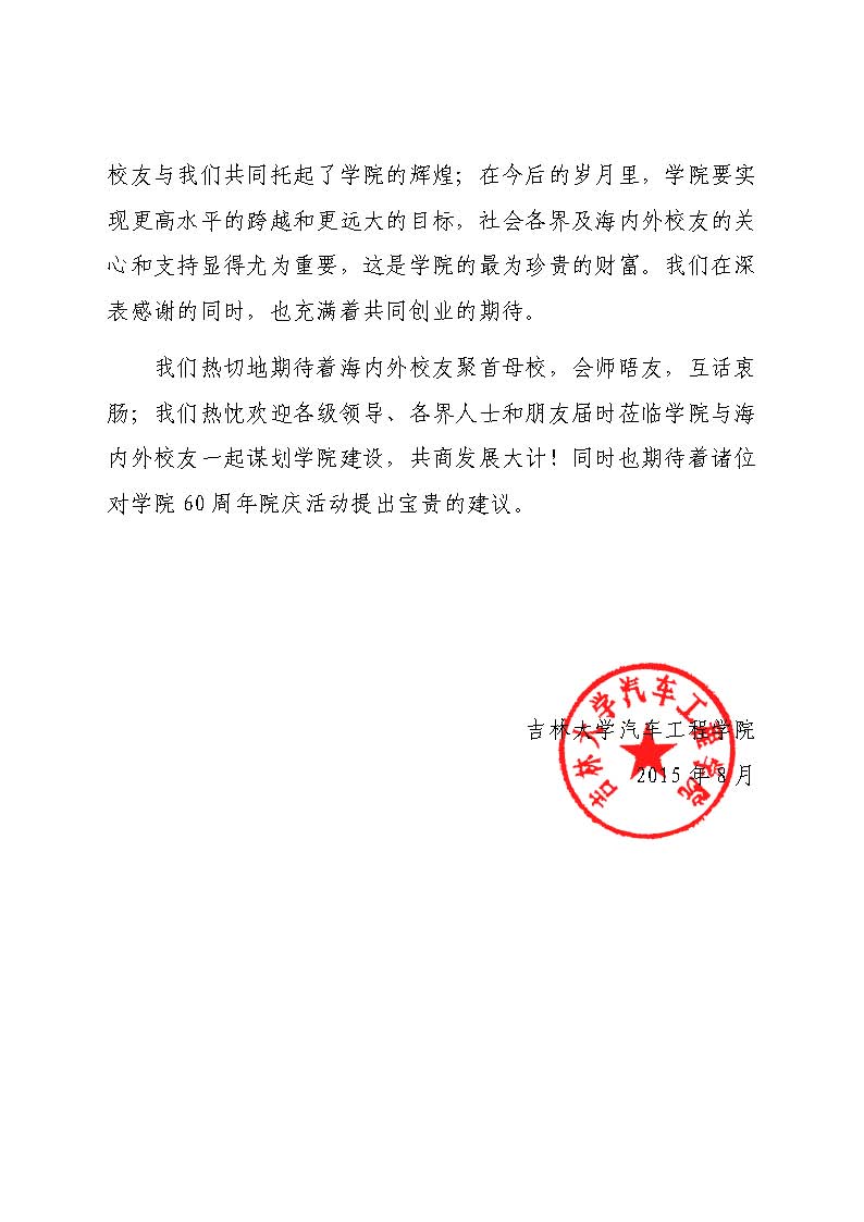 av在线 (原吉林工业大学av在线 )60周年院庆回执