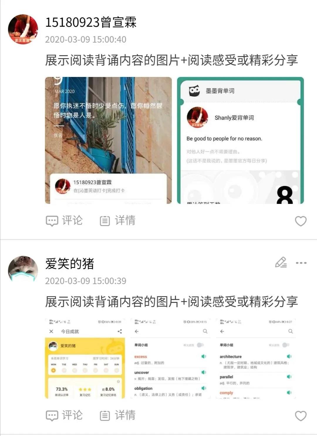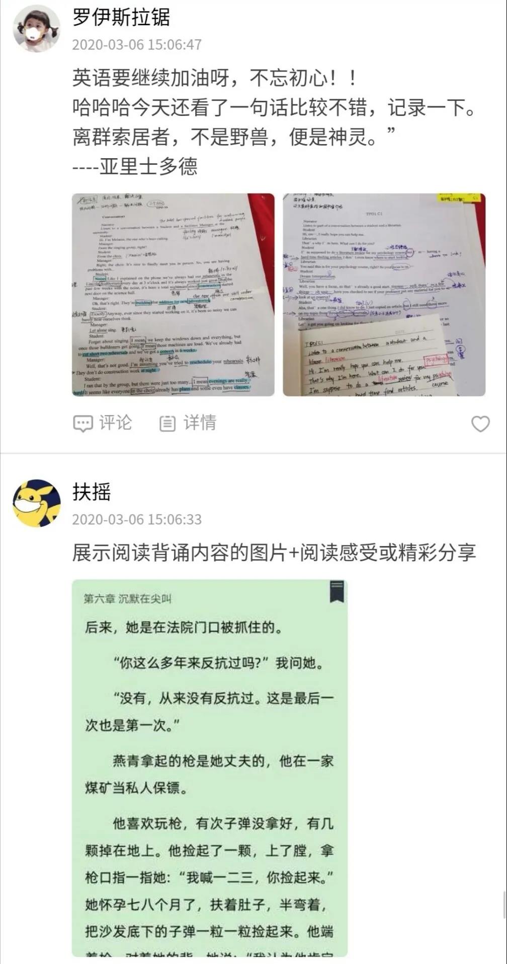 为了督促同学们在疫情期间坚持读书,提高自己的文化修养,av在线 举办了连续十五日读书打卡活动。2020年3月9日,每日一读活动圆满结束。在本次活动期间,同学们积极响应学院号召,15天不间断,坚持读书打卡,养成了每天坚持阅读的良好习惯。