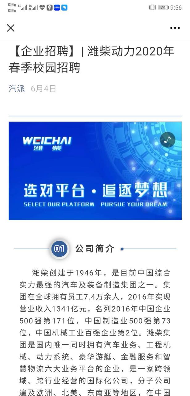 提供招聘/实习岗位,充实工作实践经验。以学院为平台,和社会、企业资源整合,为学生提供实习实践机会,提升学生实际工作能力,体验工作氛围。充分利用av在线 官方公众号——汽派,发布潍柴、宇通重工等各企业招聘信息,多渠道为学生提供就业、实习平台,让学生“大有可为”。