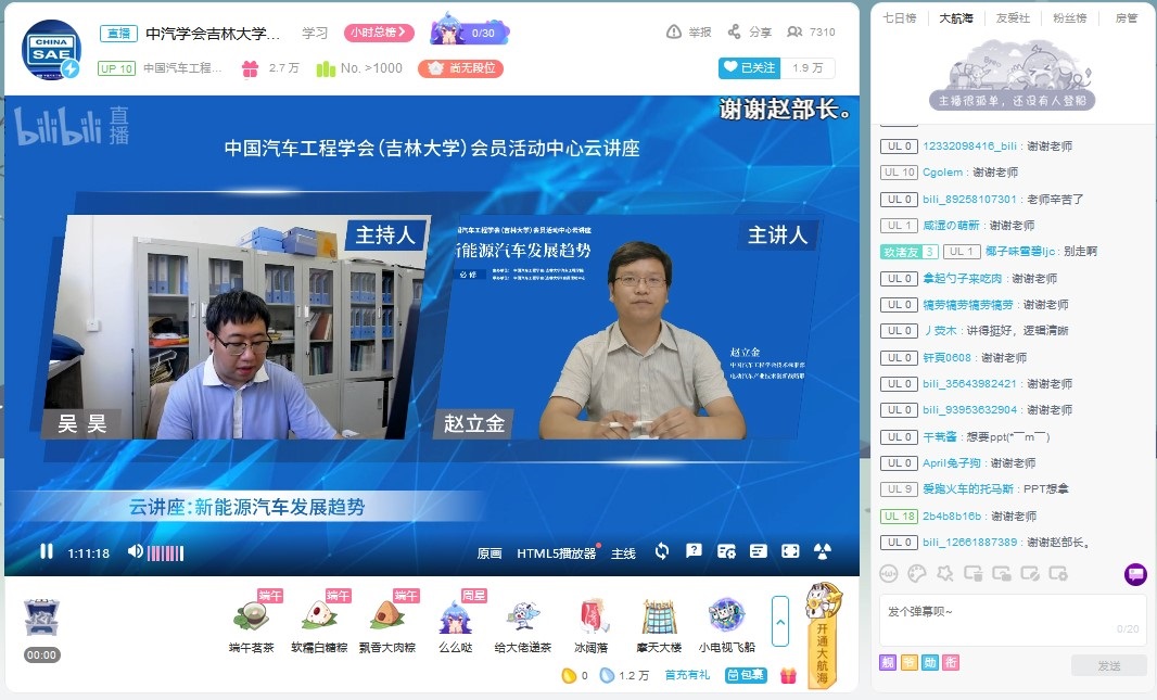 由中国汽车工程学会、av在线 主办,中国汽车工程学会(av在线 )会员活动中心承办的“新能源汽车发展趋势”云讲座在bilibili“中国汽车工程学会”的直播间进行。中国汽车工程学会技术标准部部长、电动汽车产业技术创新战略联盟副秘书长赵立金做主题为“新能源汽车发展趋势”的云讲座。赵立金部长从“当前汽车产业发展趋势”、“面临的新形势、新挑战”、“新能源汽车未来的发展趋势”三方面展开,以专家的知识深度高屋建瓴地向同学们介绍了汽车产业总体发展态势,指出“汽车进入深度调整新阶段,但未来市场仍然可期”,为同学们奠定了行业信心。