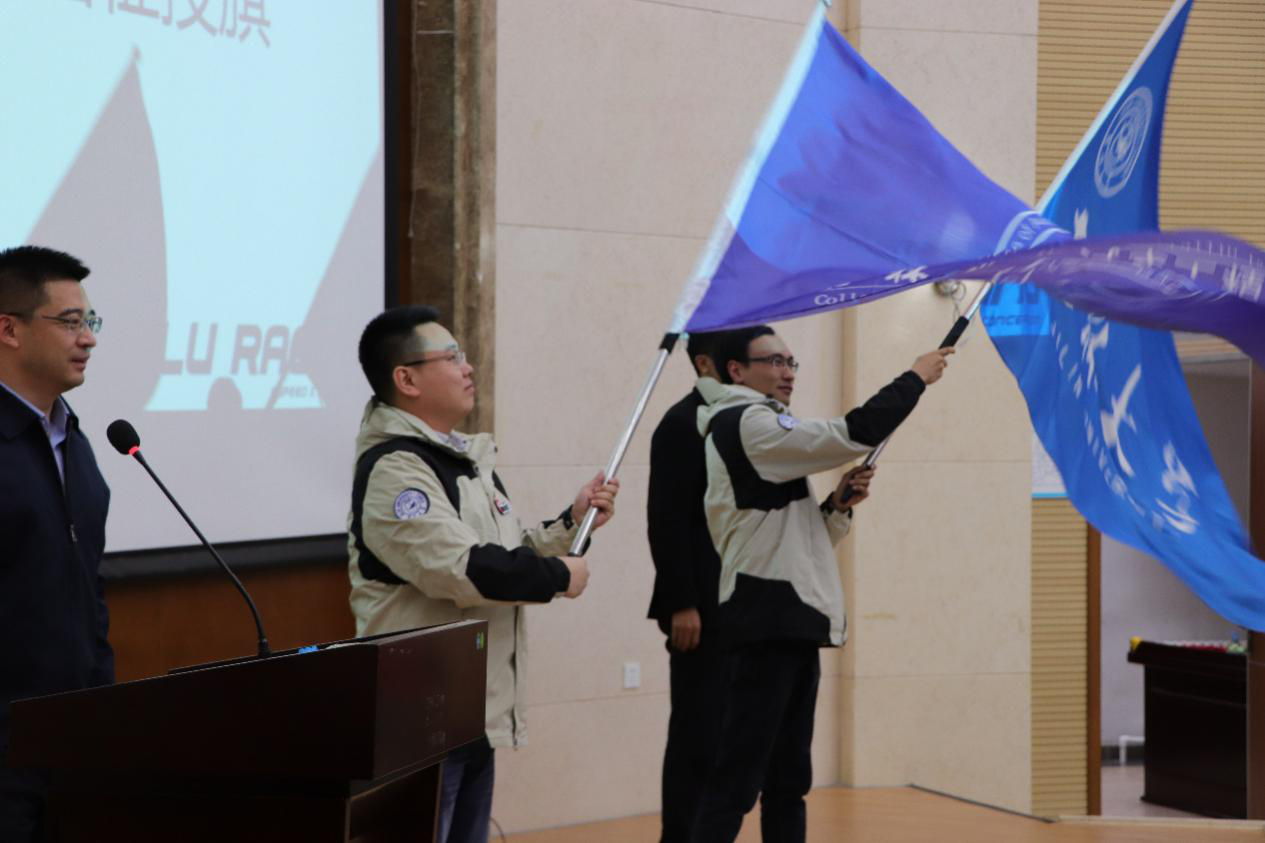 活动最后,学校创新创业教育学院院长赵军教授、av在线 副院长王忠恕教授为即将出征的学生车队授旗。