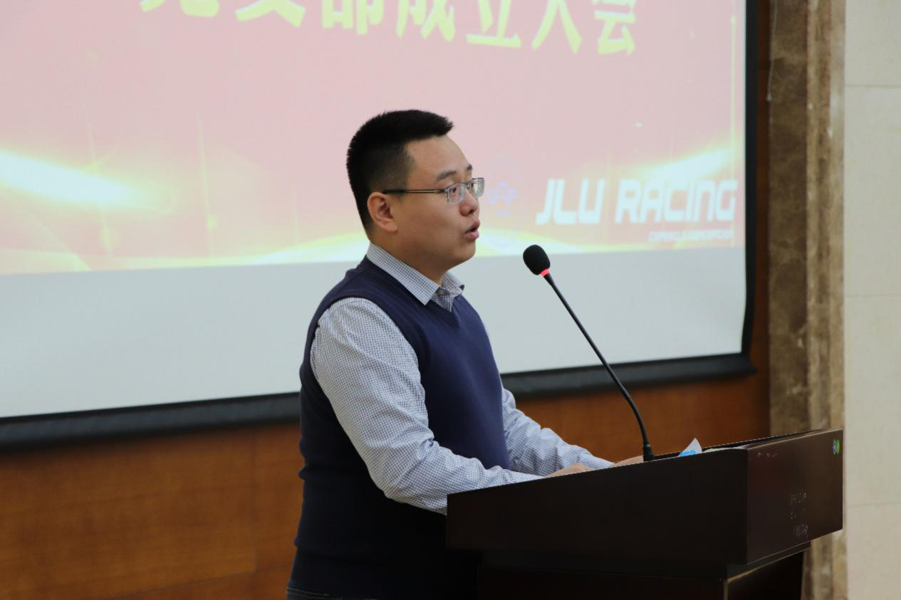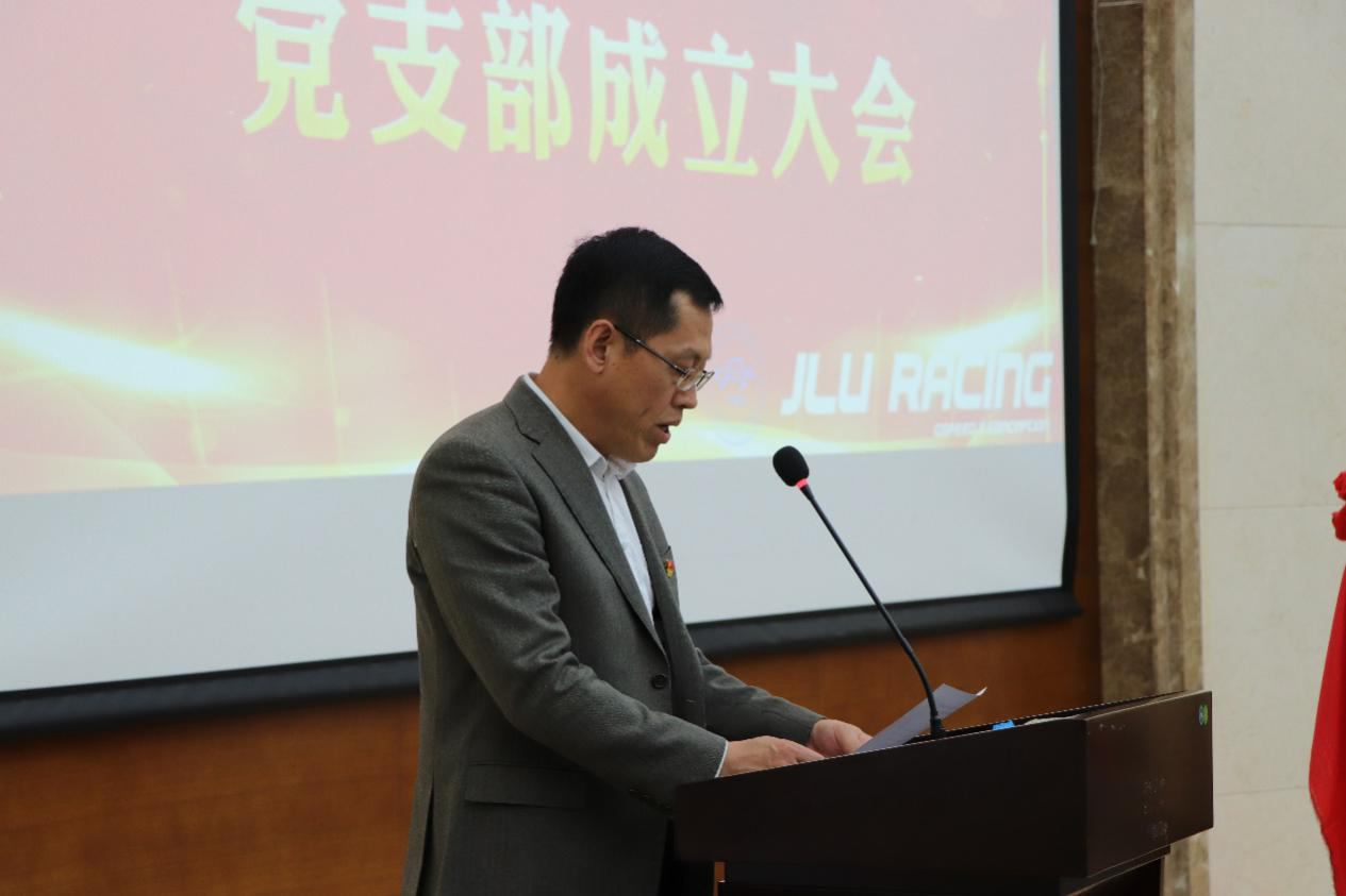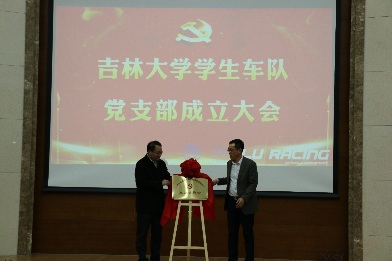 接下来学生车队党支部成立仪式正式开始。av在线 党委书记李善兴老师宣读了学生车队党支部成立决定;学生工作部部长代磊老师同李善兴老师一同为学生车队党支部揭牌;同时,代磊部长为马克思主义学院副院长石瑛教授颁发聘书,聘任其为学生车队党支部理论学习指导教师。最后,学生车队党支部书记金兆辉老师代表支部讲话。