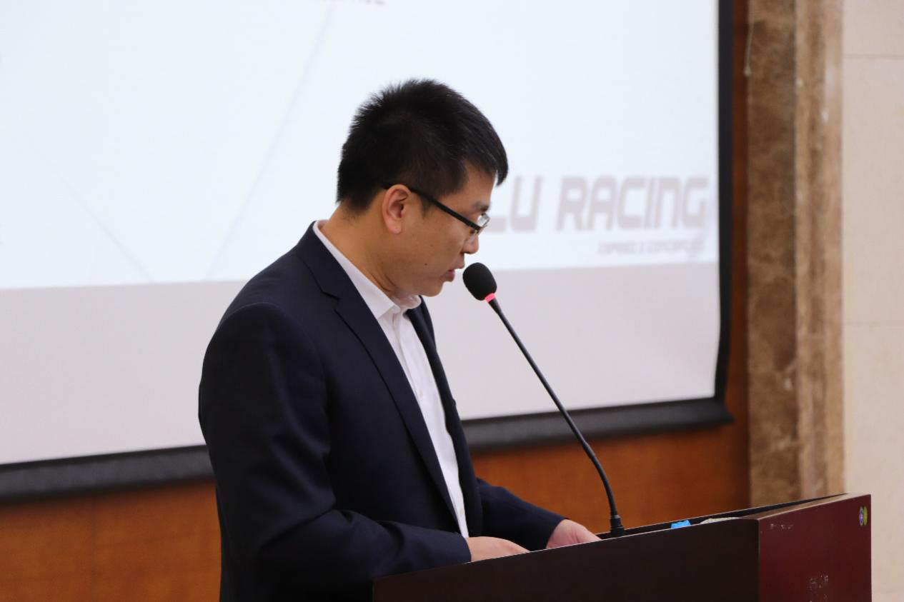 会议伊始,学生车队各队长依次上台介绍四支学生车队新赛车设计制造概况和技术特点。