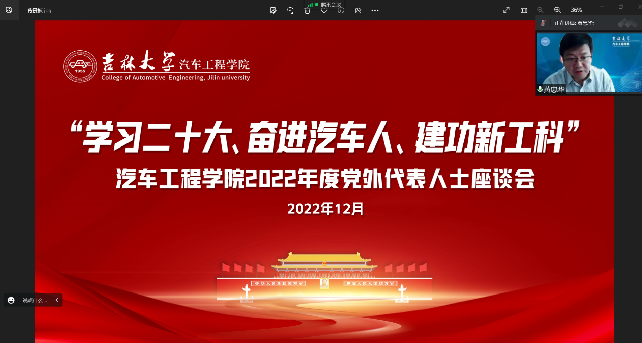 随后,党外人士代表纷纷围绕学习贯彻二十大精神、贯彻落实学校十五次党代会精神和十四五规划建设,加快学院改革发展建设、积极发挥引领作用振兴工科等方面积极建言献策。无党派人士代表管欣教授在发言中表示,很高兴看到学院党委对统战工作和党外人士的重视,希望此次座谈会能成为常态化机制,最大限度调动党外人士的积极性与主动性,齐心协力,振兴工科,为吉大汽车学科的发展凝聚智慧力量。民建av在线