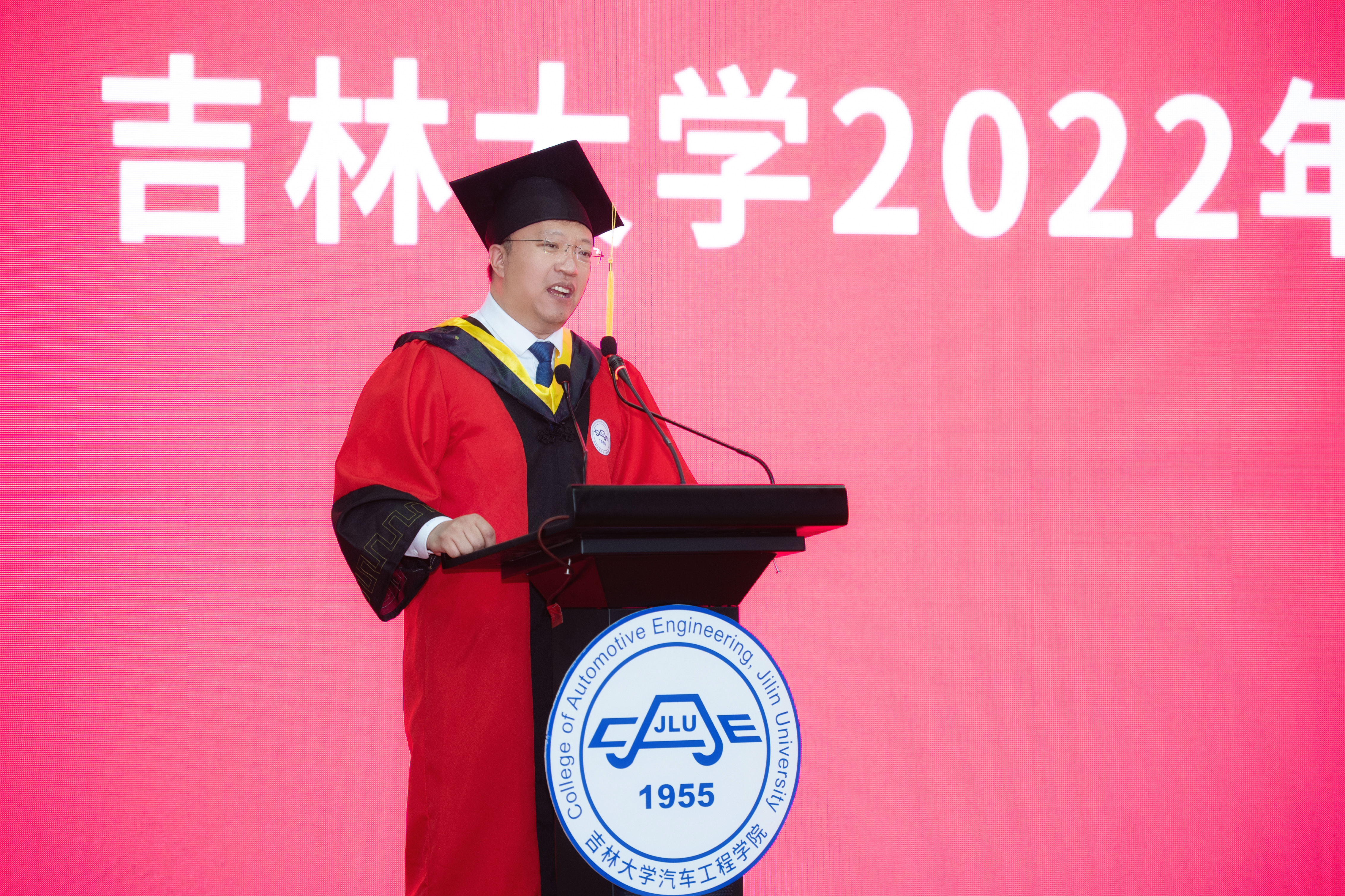 2022年学生毕业典礼暨学位授予仪式在南岭校区体育馆隆重举行,学院领导班子成员、车辆工程与动力工程及工程热物理学科学位评定分委会主任、学院教学委员会主任、各系所和机关科室的领导、教师代表、后勤工作人员代表、学生家长代表和在校的毕业生出席典礼,未在校毕业生通过云端直播的形式在线上参会。典礼由学院党委副书记兼副院长聂逯松主持。